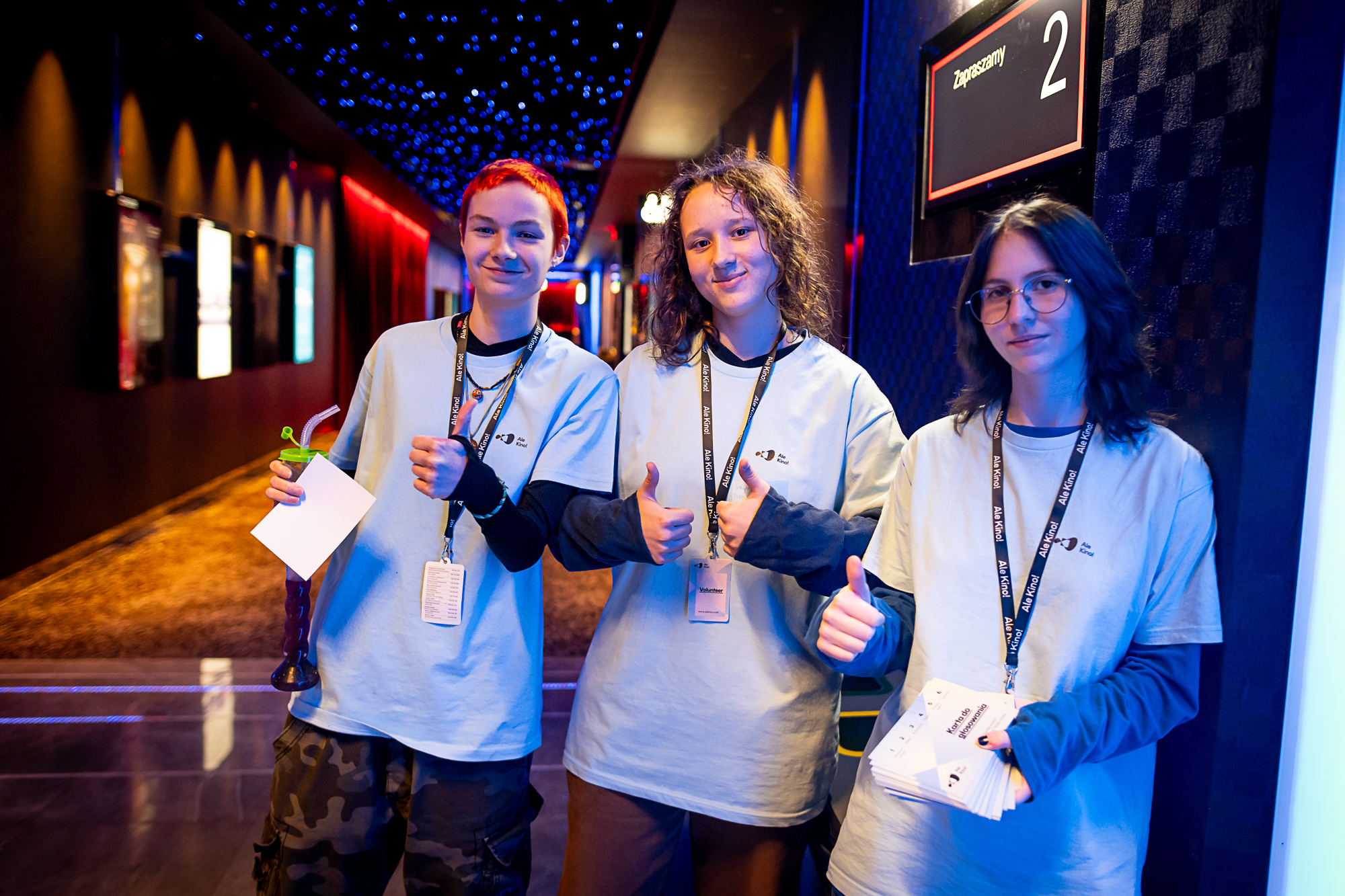 Wolontariat na dużym, międzynarodowym festiwalu filmowym to realna okazja do działania i zdobywania nowych doświadczeń. Wolontariuszki i wolontariusze Ale Kino! Byli współodpowiedzialni za przebieg wydarzenia i byli tam, gdzie tętni życie festiwalu – w salach kinowych, korytarzach przed salami i wśród widowni.